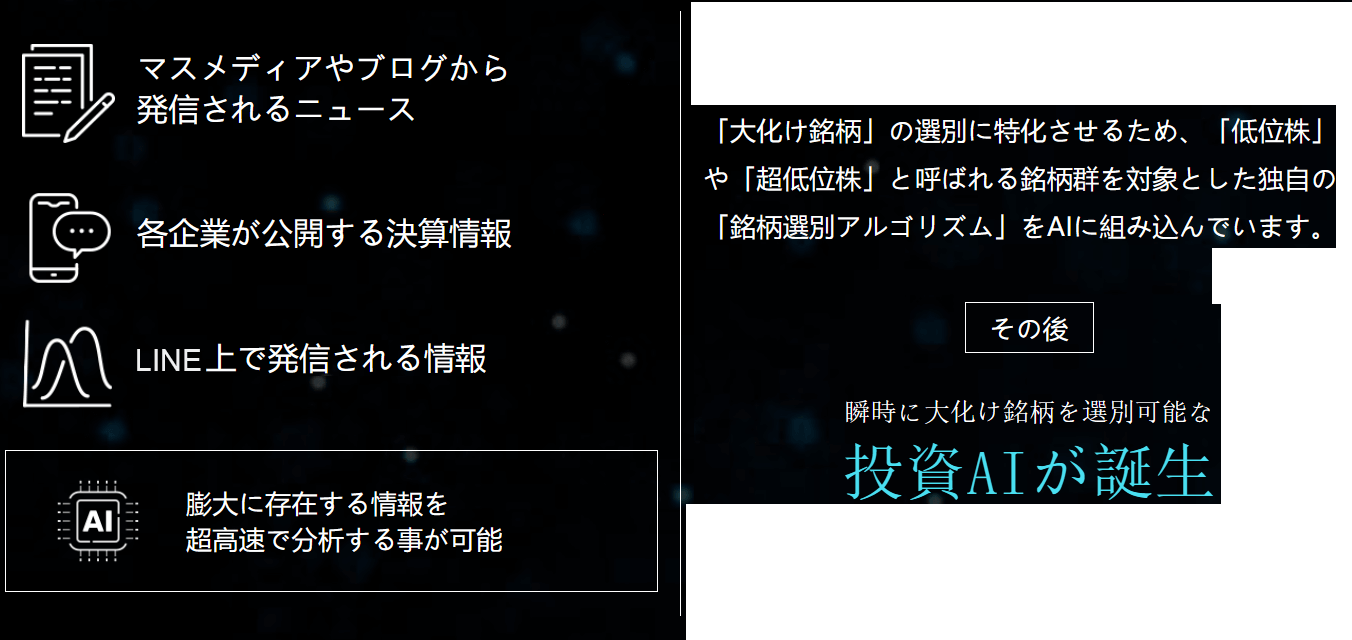 AIが膨大に存在するデータを超高速で解析し、瞬時に上昇率の高い銘柄を選別